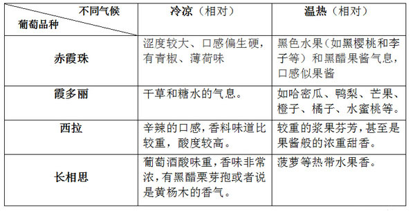 每個品種的葡萄的果粒大小、果皮厚度、色澤、色素量和密度,所含單寧的量及質(zhì)量,風味成分的構成,熟成難易度,土壤和氣候的適應性等,這些因素的不同,將造成所釀葡萄酒的香味、酸味和澀味以及口感、酸度和色澤等發(fā)生變化。