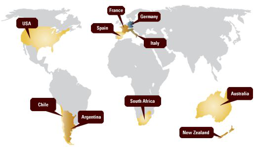舊世界產(chǎn)酒歷史悠久,釀酒史甚至可以追溯到羅馬帝國時期,例如,德國葡萄酒已經(jīng)擁有2000多年歷史,舊世界產(chǎn)酒國分布在歐洲,主要以法國、意大利、德國和西班牙等國家為代表。