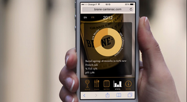 波爾多1855二級莊——布朗康田酒莊(Chateau Brane-Cantenac)自2010年起,便在每瓶葡萄酒的酒瓶上都加入了二維碼,消費者通過掃描可獲得該酒款的品鑒記錄、適飲溫度和陳年潛力等重要信息。