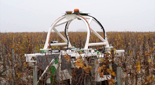 葡萄園除草機器人是較為常見和基礎的機器人,它們能夠快速精準地去除雜草。除此之外,由于體型較輕且帶有智能識別功能的特點,這類機器人對土壤和生態的破壞極小。2017年,與木桐酒莊(Chateau Mouton Rothschild)同門的克拉米倫酒莊(Chateau Clerc Milon)便在其葡萄園內測試了一款叫作“泰德(Ted)”的除草育土機器人。