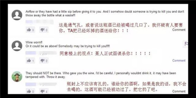 然后,有些網(wǎng)友就炸了,認(rèn)為這酒已經(jīng)被人動(dòng)過(guò)了,甚至有人認(rèn)為這是謀殺!