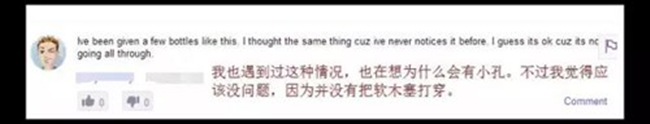 當(dāng)然,也有資深酒粉來(lái)答疑。這些小孔是生產(chǎn)商特意為之,“存在即合理”,這些小孔自有妙用。
