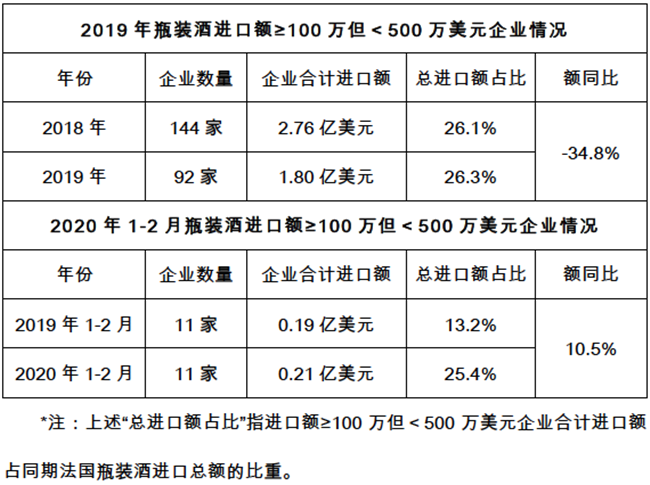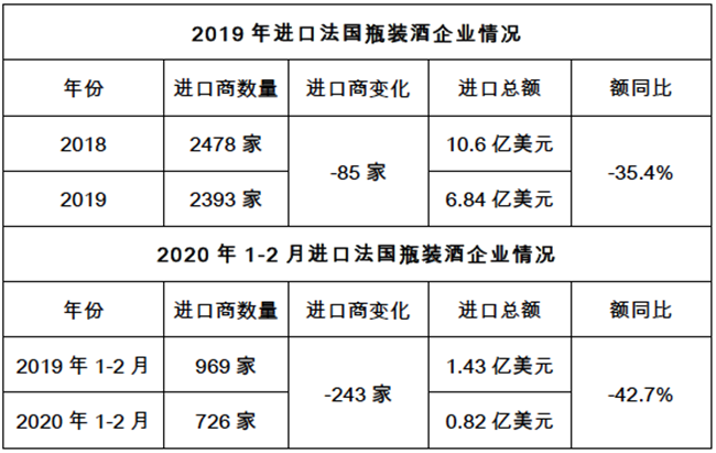今年1-2月,市場(chǎng)低迷與疫情影響的雙重沖擊下,更是出現(xiàn)了無(wú)企業(yè)進(jìn)口法國(guó)瓶裝酒超過(guò)500萬(wàn)美元的慘淡開(kāi)局。