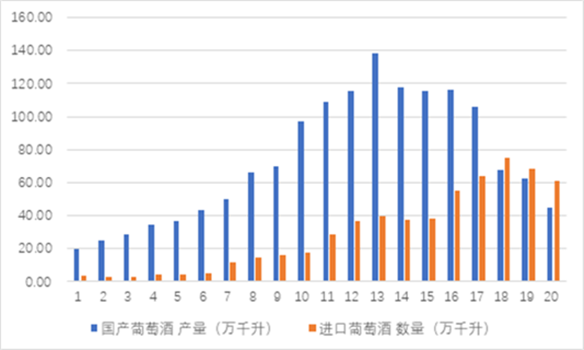 在如此的趨勢(shì)之下,國(guó)產(chǎn)葡萄酒的發(fā)展更是一波三折,甚至在2017年之后連續(xù)被進(jìn)口葡萄酒反超。