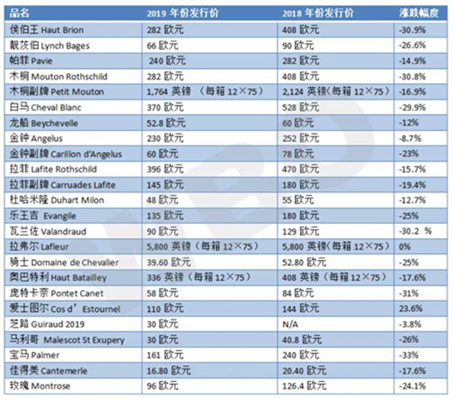 根據(jù)liv-ex公布的部分2019年份期酒的發(fā)行價(jià)可以看出,2019年份期酒的發(fā)行價(jià)較2018年份近乎于全面下跌,平均跌幅在20%左右。我們認(rèn)為,期酒全面下跌的原因與新冠疫情有關(guān)——疫情造成全球性經(jīng)濟(jì)不振,從而導(dǎo)致消費(fèi)緊縮。具有投資屬性的名莊酒,其價(jià)格無(wú)疑會(huì)聞風(fēng)而動(dòng)。