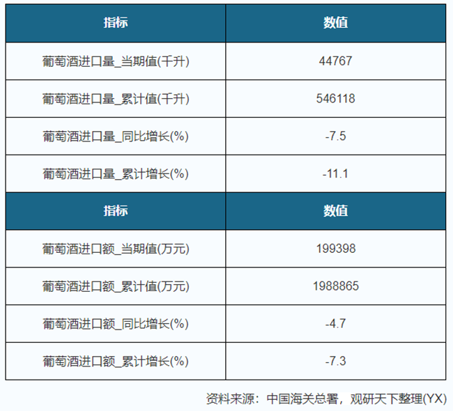 2019年10月我國葡萄酒進(jìn)口量為44767千升,同比下降7.5%,進(jìn)口金額為199398萬元,同比下降4.7%;1-10月進(jìn)口量為546118千升,累計(jì)下降11.1%,進(jìn)口金額為1988865萬元,累計(jì)下降7.3%。