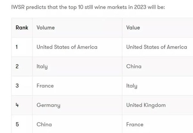 到2023年,中國將成非氣泡葡萄酒價值第二大市場