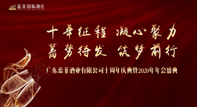 1月3日,廣東藍(lán)菲酒業(yè)有限公司全體員工齊聚一堂,盛裝出席藍(lán)菲酒業(yè)“十年征程 凝心聚力 蓄勢待發(fā) 筑夢前行”十周年慶典暨2020年年會盛典,共同回顧2019卓越成績,翻開2020新的篇章,見證藍(lán)菲酒業(yè)年度盛典的輝煌時(shí)刻!